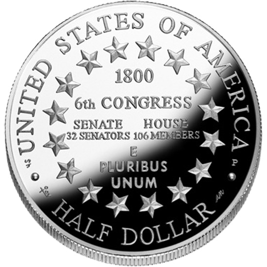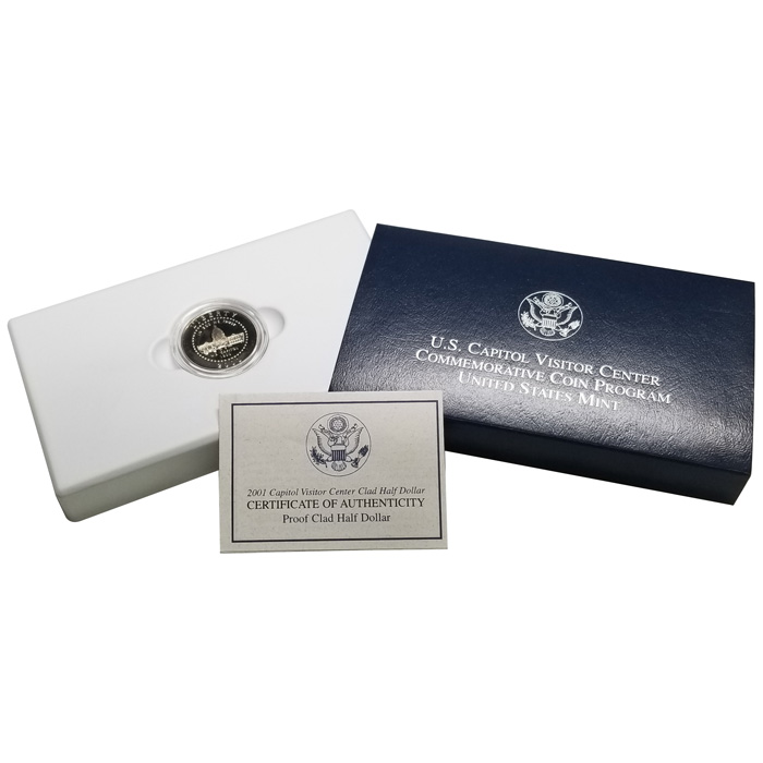 The 2001 Capitol Visitor Center Proof Clad Half Dollar, struck in accordance with legislation passed by Congress and signed by President William J. Clinton on December 6, 1999, as Public Law 106-126.  This coin has been produced by the Department of the Treasury, United States Mint to commemorate the first convening of the Congress in the Capitol building.
