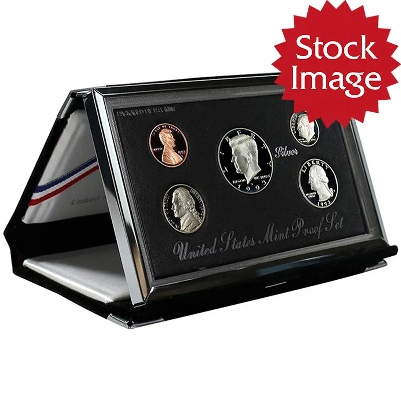 Premier Silver Proof Sets contain the same five coins as the standard silver proof sets but are housed in a deluxe case specially designed to display these superb coins..