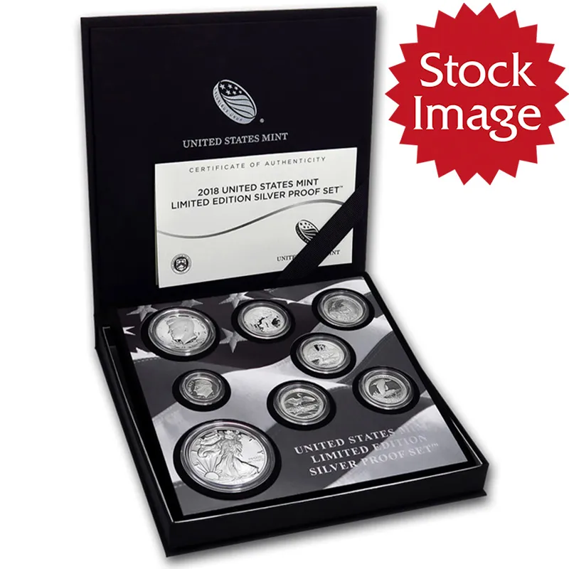 The 2018 United States Mint Limited Edition Silver Proof Set contains eight coins with stunning proof finishes. The coins included in this set are: