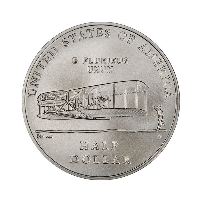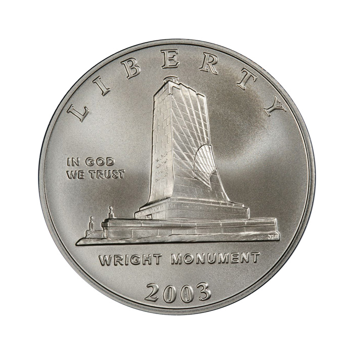 This coin has been produced by the Department of the Treasury, United States Mint, to commemorate the historic first flight of Orville and Wilbur Wright in Kitty Hawk, North Carolina, on December 17, 1903.