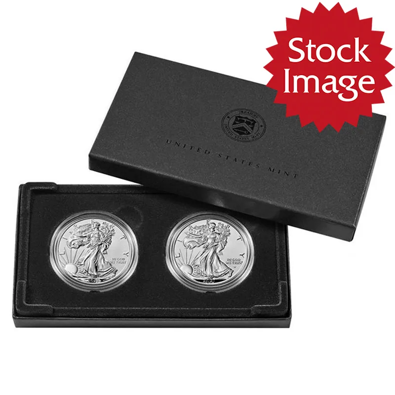 The 2021 American Eagle One Ounce Silver Reverse Proof Two-Coin Set Designer Edition contains one original and one newly re-designed American Eagle One Ounce Silver Coin with stunning reverse proof finishes, a unique set for the serious collector.