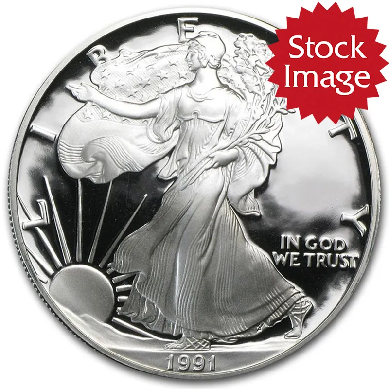 These American Eagle Silver Proof dollar coins have been produced each year by the United States government mint since 1986.  Considered by many to be one of the most beautiful American coin designs, it is modeled after the old Walking Liberty half dollars.  Each official US proof issued dollar coin contains 1 ounce of pure silver.  Each proof coin comes in the official government issued velvet lined gift box along with the original certificate of authenticity (COA) or insert card.